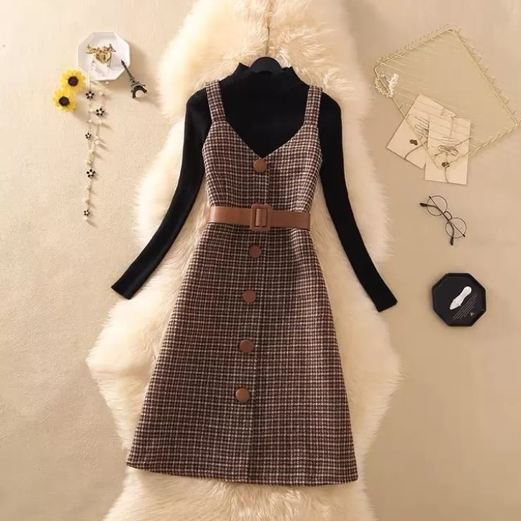 Winter Co-Ords | Winter Dresses^Alamode By Akanksha Rader Set Of Top And Woolen Tweed Dress